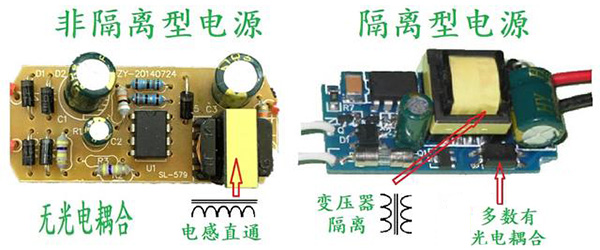 由電子元件組成的電源可分為開關(guān)電源、線性電源、阻容降壓型電源三種,其中隔離型線性電源帶有笨重的變壓器,很容易區(qū)分。阻容降壓型電源屬于非隔離型電源,下面說明下隔離型開關(guān)電源和非隔離開關(guān)電源的區(qū)分。