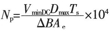 6、變壓器原邊匝數(shù)NP如上式:△B為磁芯工作磁感應(yīng)強(qiáng)度變化值(T),Ae單位為cm2,Ts單位為s。