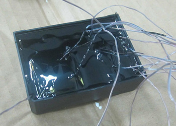 電源模塊多數(shù)是灌封類產(chǎn)品,要想測(cè)試內(nèi)部元器件的溫升,需要在裸板套裝外殼灌封前,將熱電偶布到內(nèi)部關(guān)鍵元器件表面,再進(jìn)行灌膠。