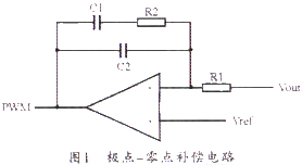 首先在所有增益大于0dB的頻率處,其閉環(huán)相位應不超過-360°,在實際設計中,一般選擇小于300°。閉環(huán)增益的穿越頻率盡可能高,直流增益盡可能大,這樣有利于提高系統(tǒng)的調(diào)節(jié)精度和瞬態(tài)響應。最后,閉環(huán)增益曲線的斜率應以-20Db/dec下降。由于不同電源采用的控制方式不同,相應的補償方式也不同。本文采用電流型控制方式,采用的補償方式為極點一零點補償。這種補償方法在直流處有一個極點,可通過提高誤差放大器的開環(huán)增益來改善輸出調(diào)節(jié)性能。在輸出濾波器最低極點頻率或以下處引入一個零點,可以補償濾波器極點引起的相位滯后。